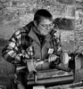 Un visiteur, Monsieur Magnien, m'a photographié au travail, merci à lui... de bien belles photos (j'aime les images de mains d'artisans au travail). Je fais une drôle de tronche, la pièce de bois tournait à près de 1500 tours et le vent envoyait les copeaux voler un peu partout (mais après tout c'est peut être ma tronche de tous les jours : je ne me regarde pas trop dans la glace !)